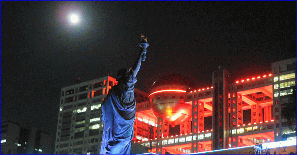 | お台場の秋・名月と赤色に染まるフジテレビ |