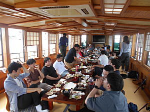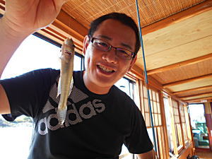 立会川 大山丸 東京湾でキス釣りと揚げ立て天ぷら 大山丸の自慢、新感覚のご利用方法のひとつ 東京湾の船上で食べる天ぷらの味は格別です。